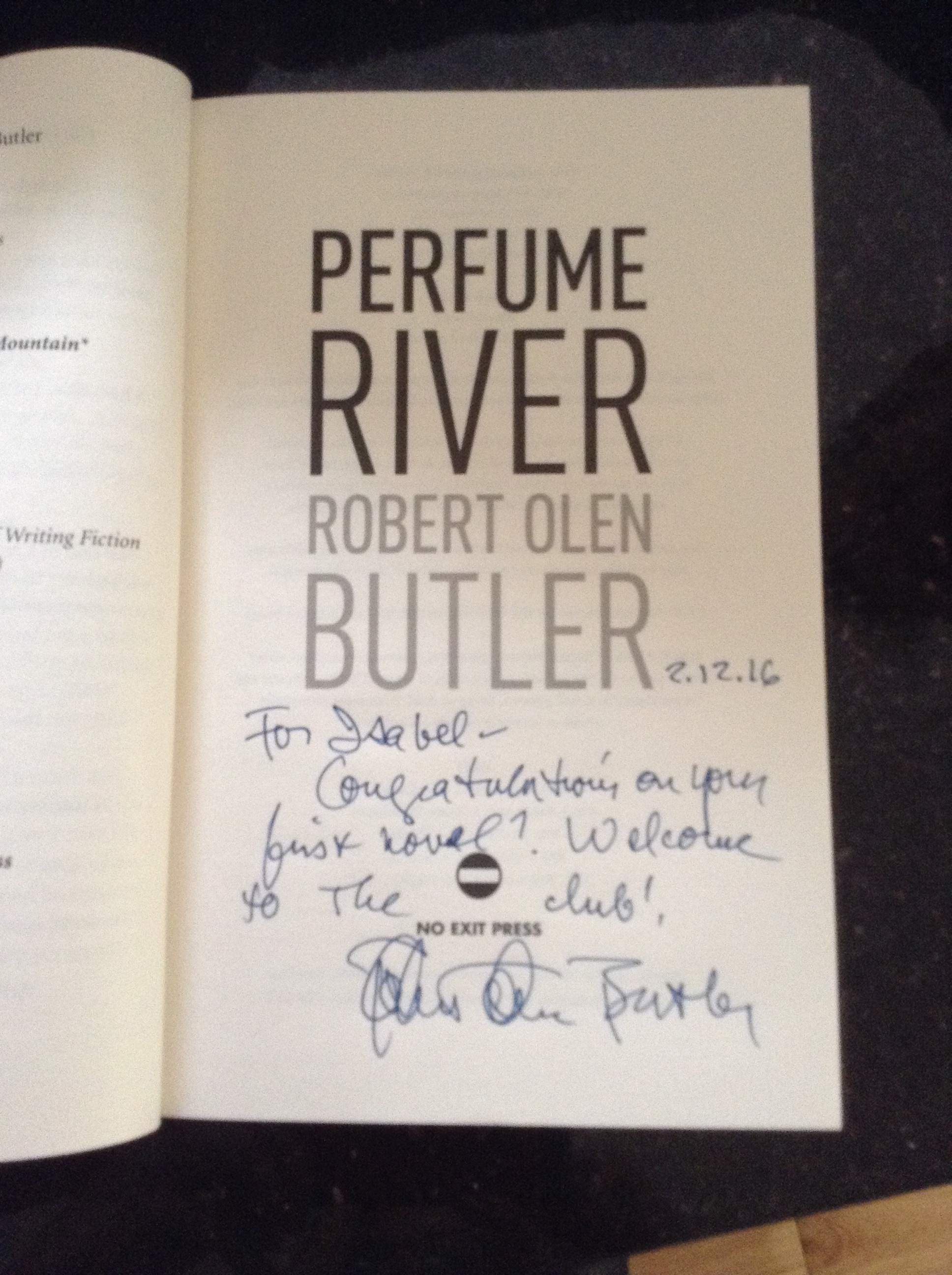 Posted by Robert Olen Butler | December 4, 2016, 08:48Thank you for your lovely message, Robert. It was wonderful to meet you and hear you talk about writing. Hope you had a good trip home and that you enjoy the book – I have a few of yours lined up to keep the inspiration going!